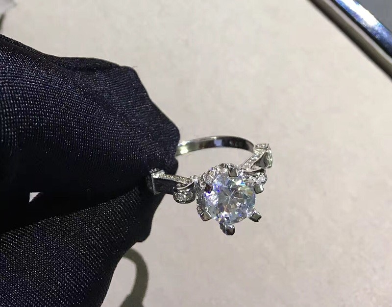 Lao Feng Xianghe platinum PT950 diamond ring female six-claw group inlaid buds 18k white gold ring proposal ring gift