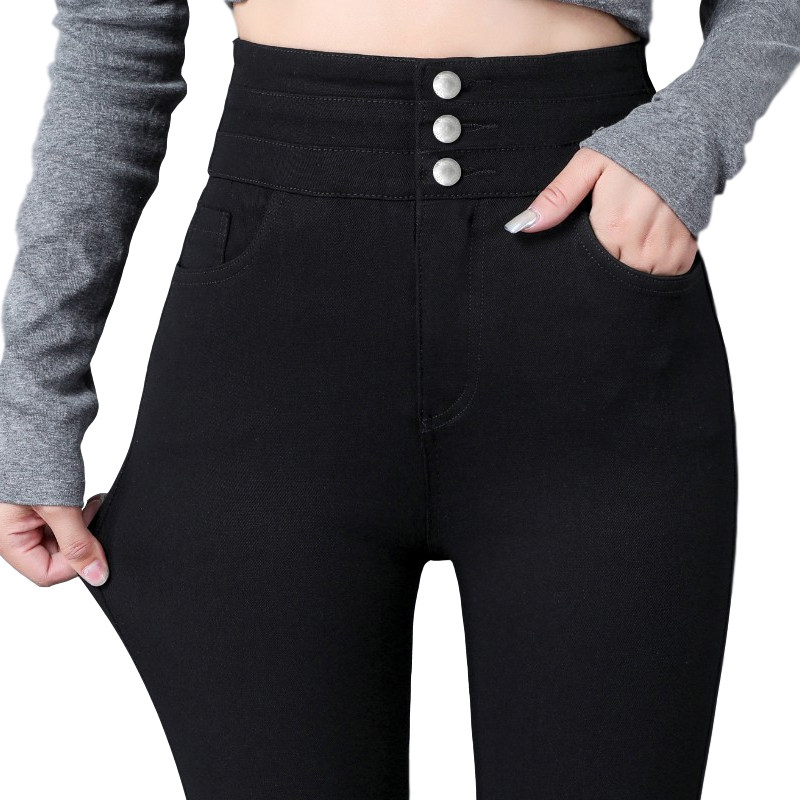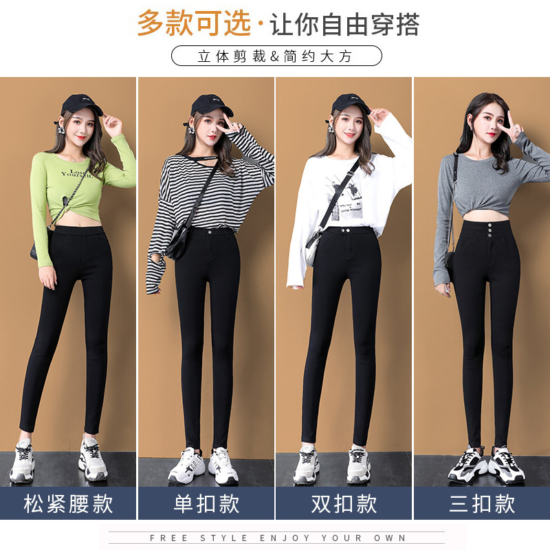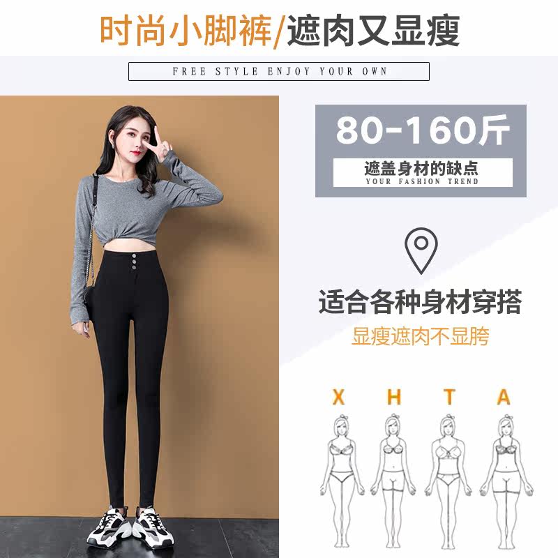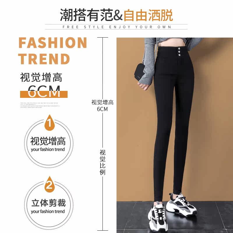 Black inner lap pants woman outside wearing spring autumn 2021 new thin section high waist plus growing size pencil small black pants long pants