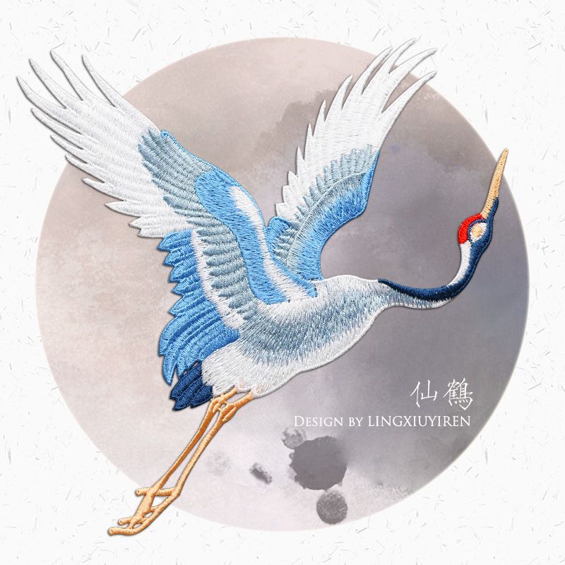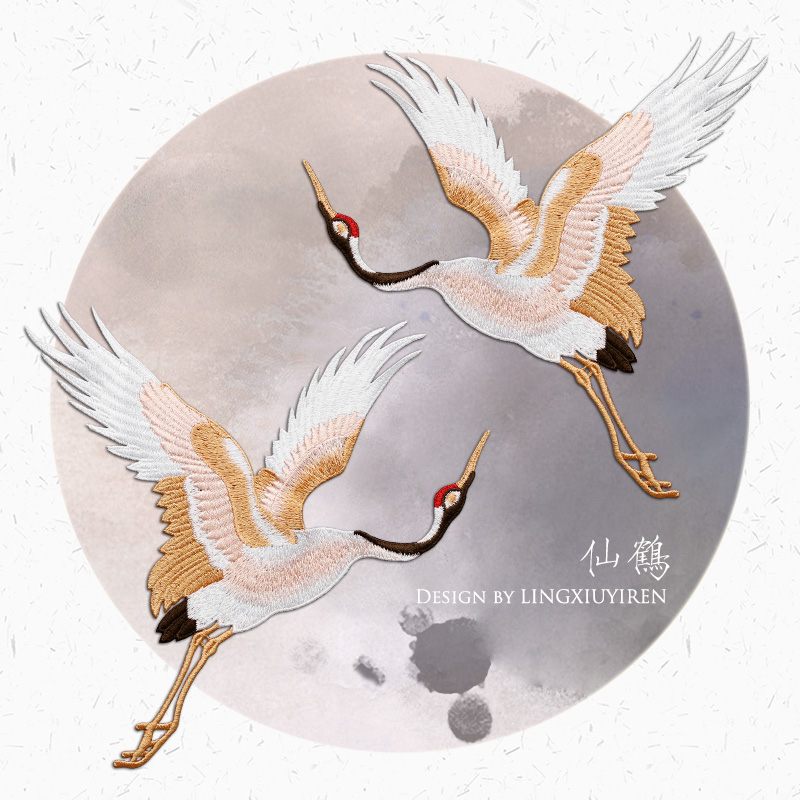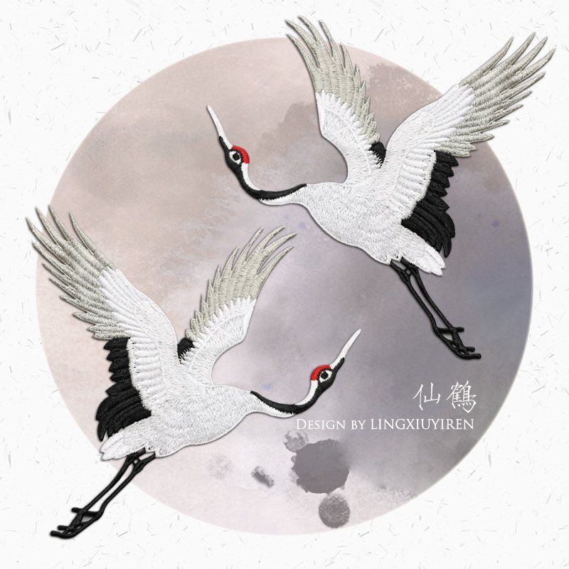 Self-adhesive oatmeal self-adhesive cloud free of ironing national tide bar Miniature White Crane Small Fairy Crane Embroidered Cloth Patch Patches Clothing Accessories