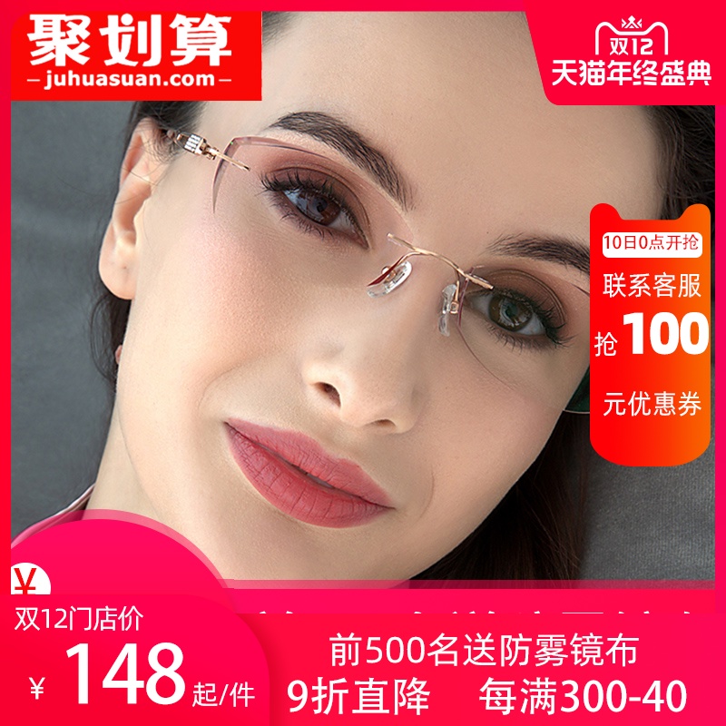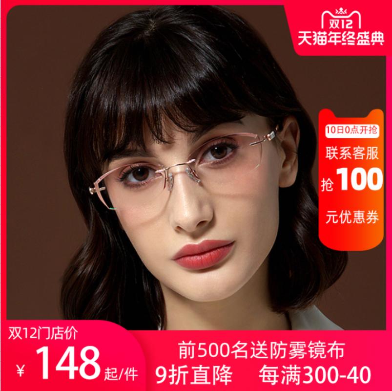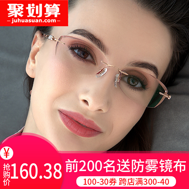 Pure titanium no-frame myopia glasses female finished inlaid diamond cut edge discoloration and fit with endless frame eyes ultralight
