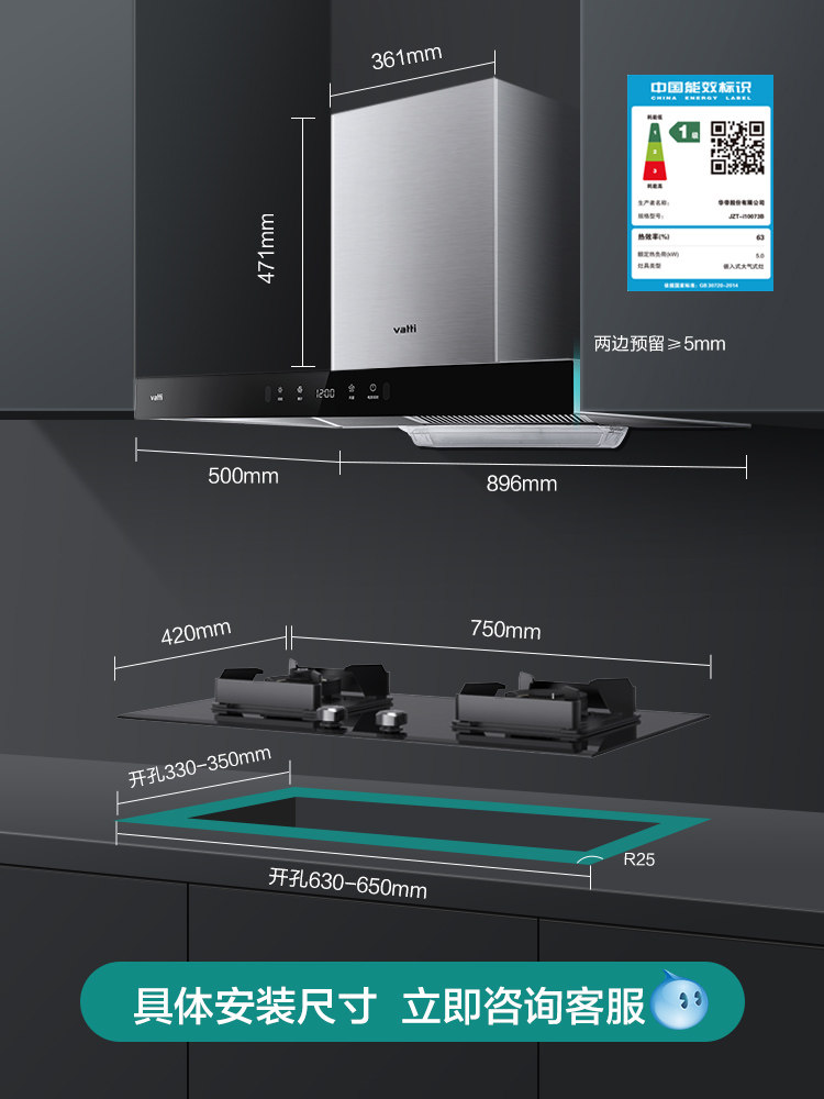Vantage 11129 10039B European-style Range Hood Gas Stove Package Fire Stove Smoke Stove Combination Flagship Store