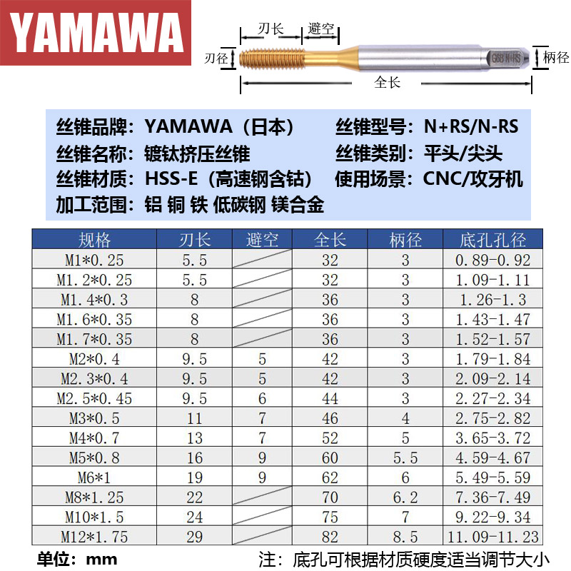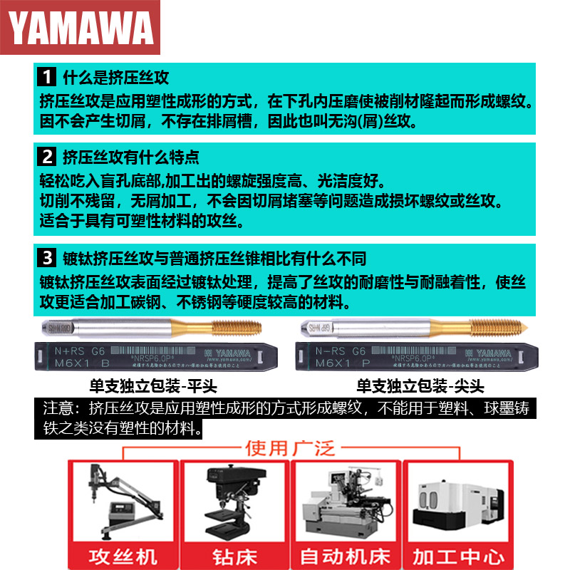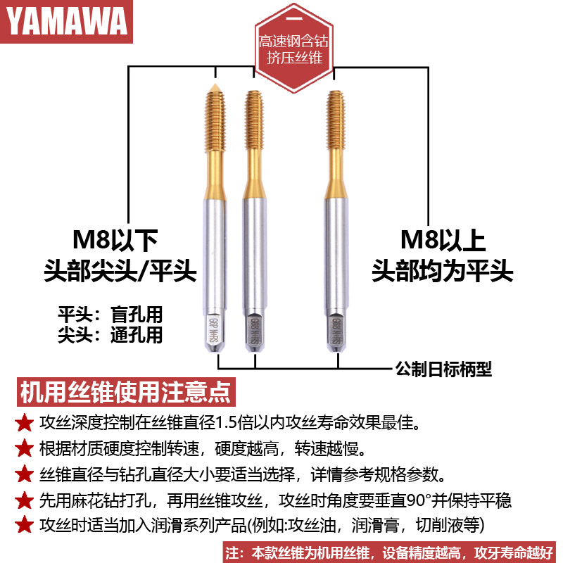 YAMAZAWA JAPAN IMPORT SQUEEZE SCREW TAPPING FINE TOOTH M2m3m45m68 STAINLESS STEEL WITH TITANIUM PLATED Toothless Screw Tap