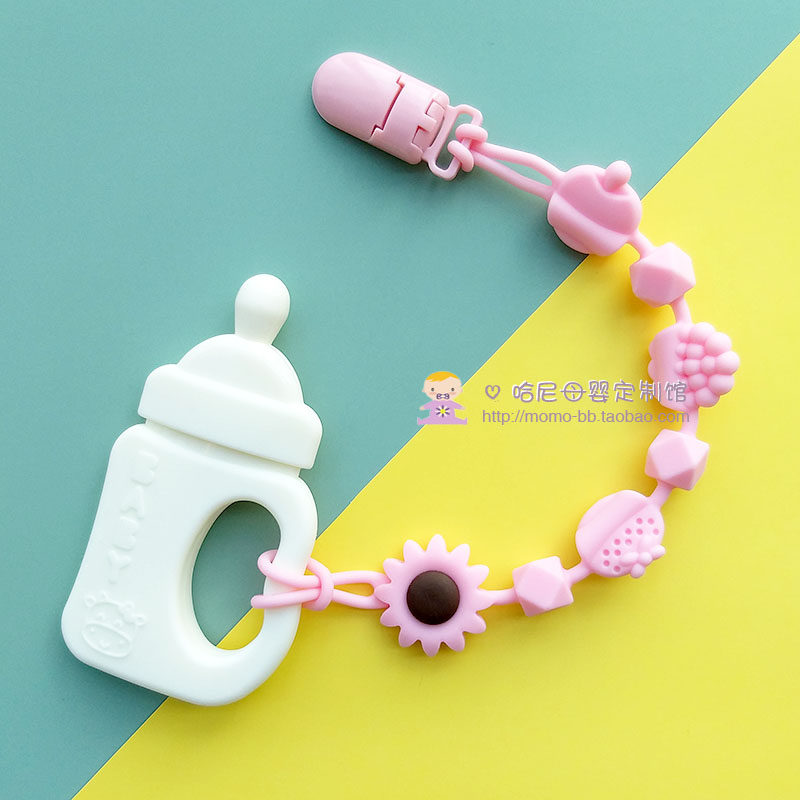 Micro-critical baby bottle gear fixer silicone can gnaw boiled anti-drop chain baby comfort molars nipple chain two sets