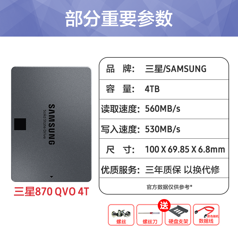 Samsung solid state drive 870QVO 4T laptop SSD 4tb desktop computer sata3 interface disk storage