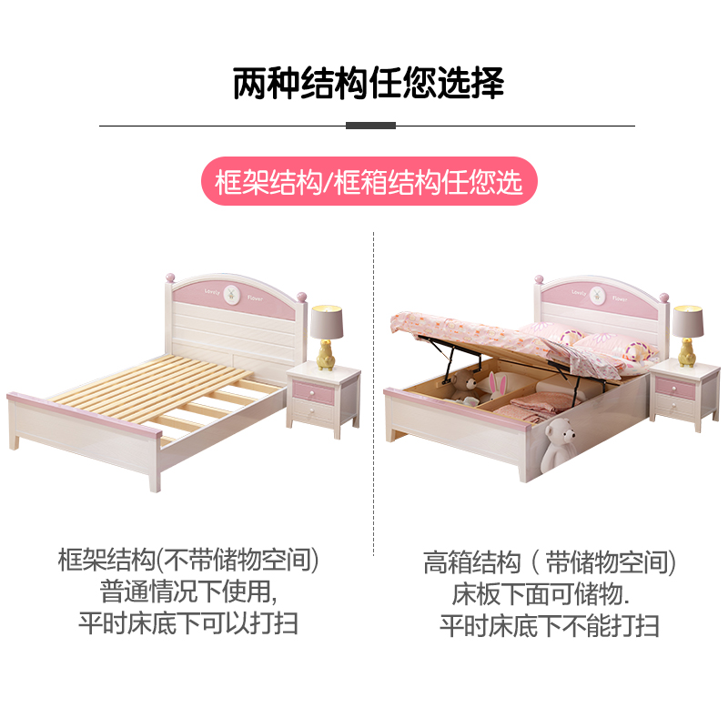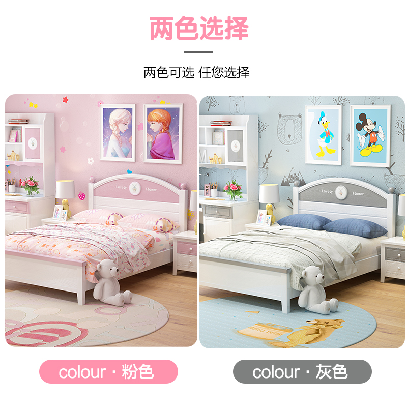 Solid wood children's bed girl princess bed sheet bed Girl 1 5 children 1 35 girl pink 1 2 meters solid wood bed