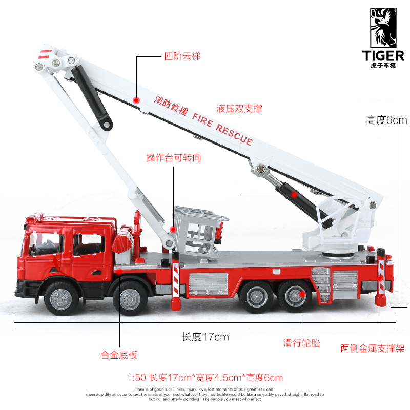 Genuine Cadiwei alloy engineering vehicle model 119 climbing Fire Truck 1:50 ladder truck 620014 fire truck