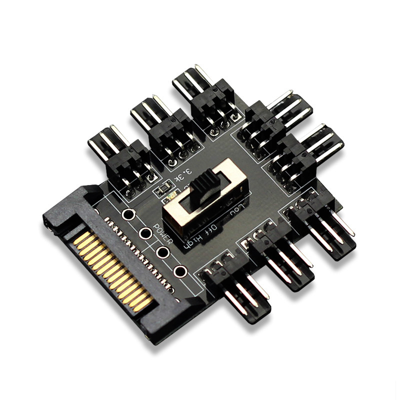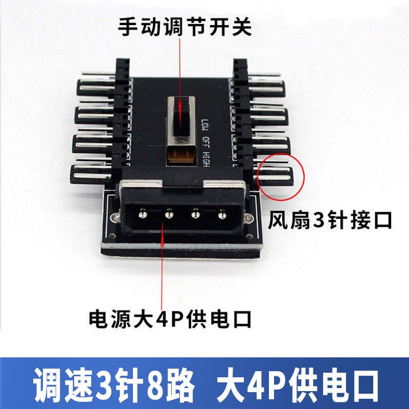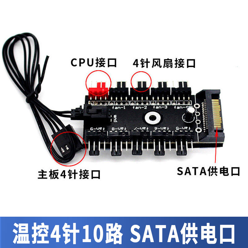 Main case fan hub extension line FAN HUB motherboard 4-wire PWM temperature control 3-pin multi-way control board governor
