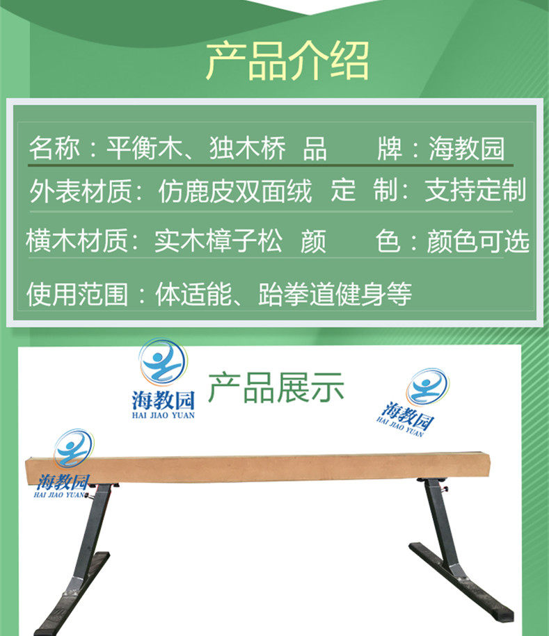Adjustable wooden balance beam kindergarten gymnastics training equipment Adjustable height 50cm to 80cm plank bridge