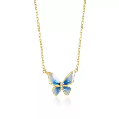 French empty window Enamel gradient blue Butterfly necklace Clavicle chain Silver gold-plated birthday gift for girl girlfriends