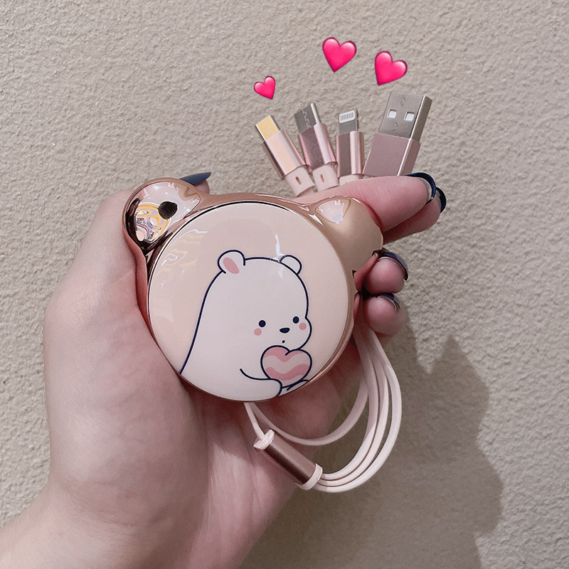 Pink Bear (Apple Android TYPEC) Black Bear (Apple Android TYPEC) Pink Bear Data Cable Fast Charge Set Black Bear Data