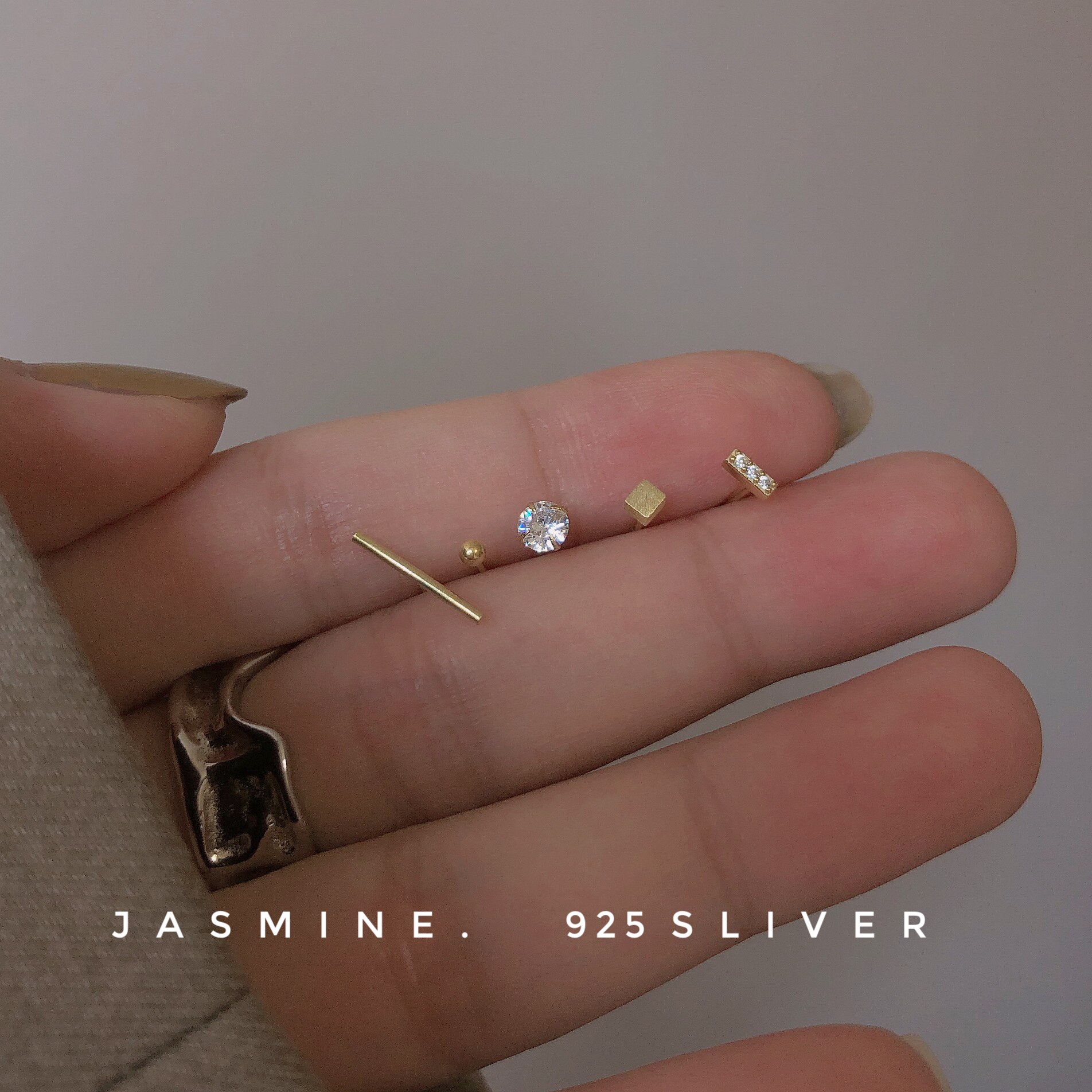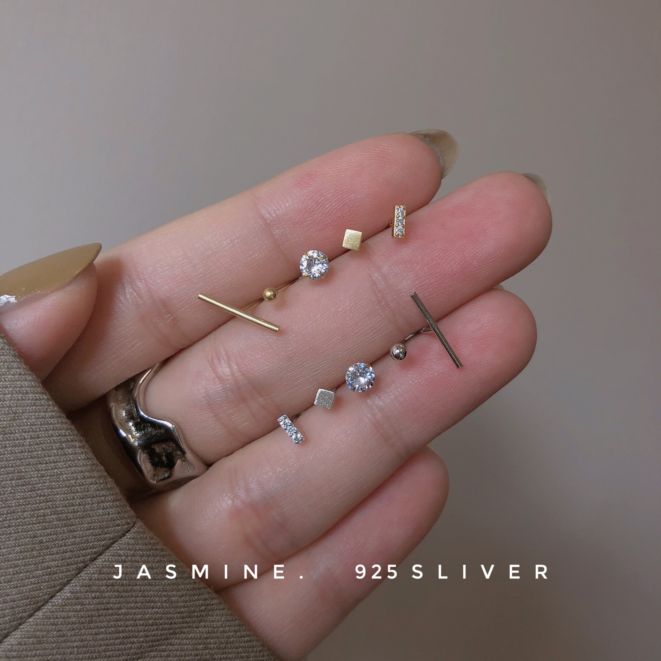 Sterling silver practical versatile five-piece set of ear needles Basic unlimited combination Sterling silver ear geometry ear bone nail