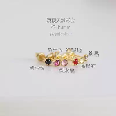 Natural color gemstone transfer ear needle purple tooth black olive amethyst sterling silver gold-plated single sale multi-ear pierced welfare