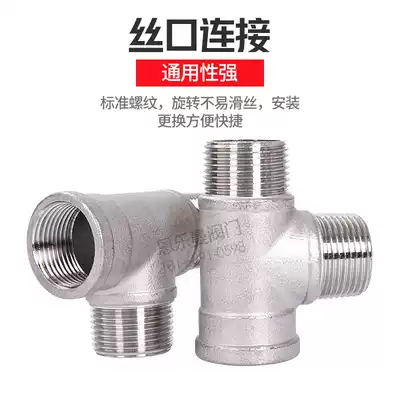 304 stainless steel inner and outer wire tee joint internal thread plumbing tee fitting 4-point soft pipe tee joint