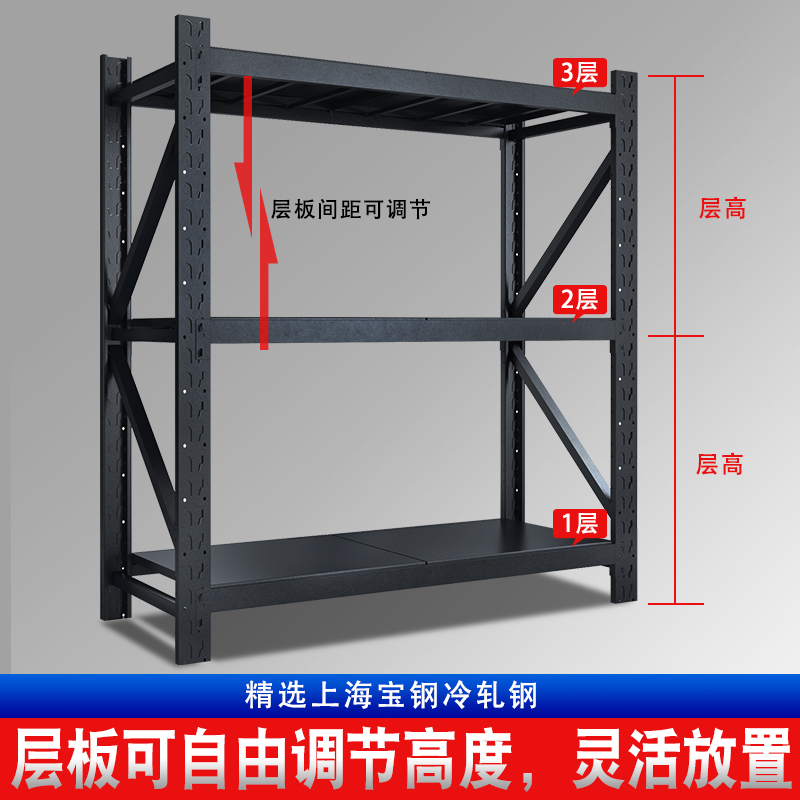 Warehouse 1 8 meters 2 meters high storage shelves three-layer warehouse shelves Household garage shelves Balcony multi-layer storage shelves