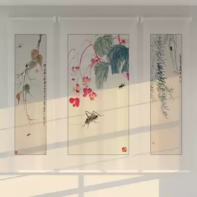 Modern new Chinese painting hotel decoration painting office hanging painting tea room hanging roller curtain Qi Baishi calligraphy calligraphy painting
