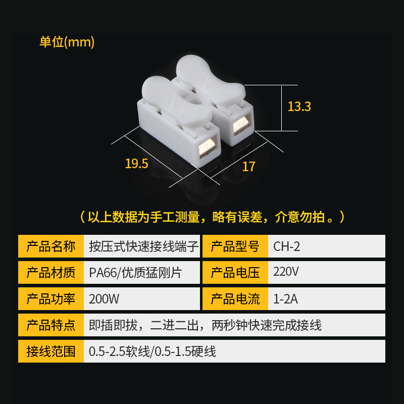 CH - 2 - bit press self - lock fast terminal terminal wire wire connector 3 - bit spring connector