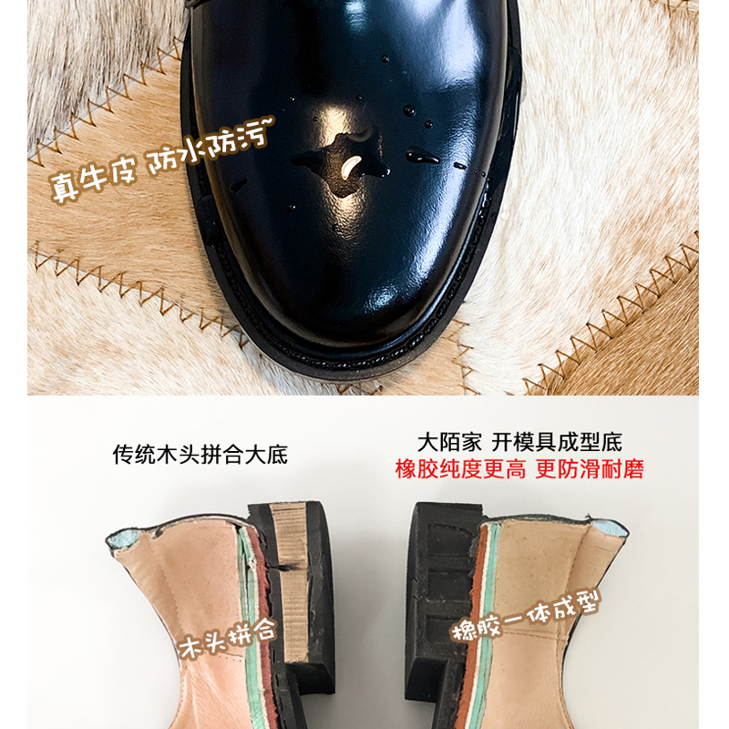 Forest Great StrangleBritish Wind Small Leather Shoes Girl Genuine Leather Japan Plus Suede Korean Version 100 Hitch Black New Flat Bottom Autumn Winter Single Shoes