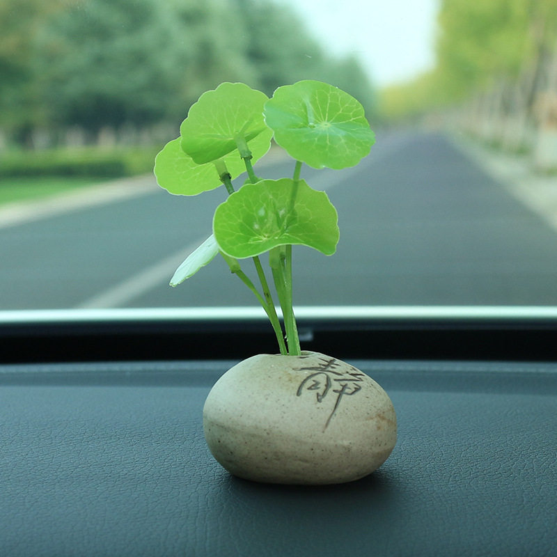 Car Pendulum Piece Creative Variety Emulation Plant Copper Money Grass Zen potted on-board solid balm vehicle On-board Decorations