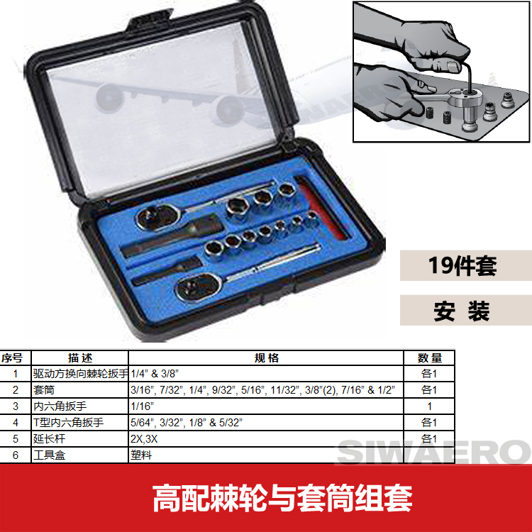 Hi-Lok installation 19 pieces Hi-Lok installation and demolition 9 pieces Hi-Lok card rings Demolition Sleeves 6 pieces 1 4 Mini ratchet wrench Hi-Lok installation 12 pieces of Hi