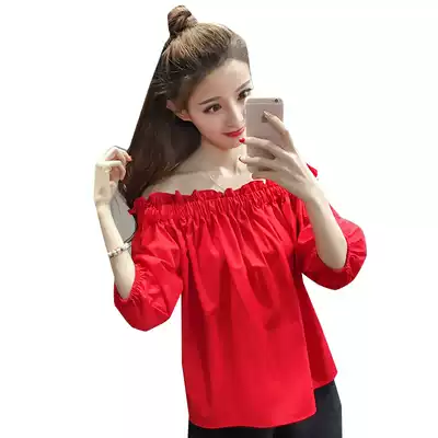Tide brand shoulder shirt Women's 2021 summer New loose fashion wooden ear heaper sleeves off-the-shoulder shirt