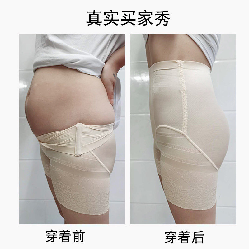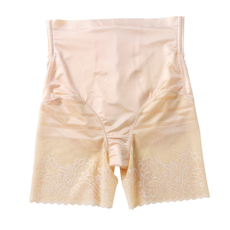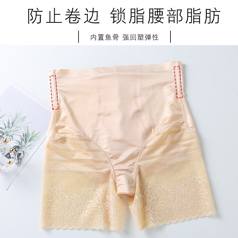 Belly and hip-lifting underwear women's mid-waist boxer no trace summer thin section small belly large size lace edge bag hip safety pants