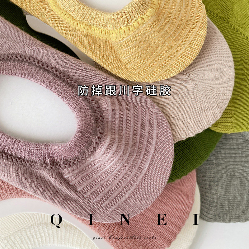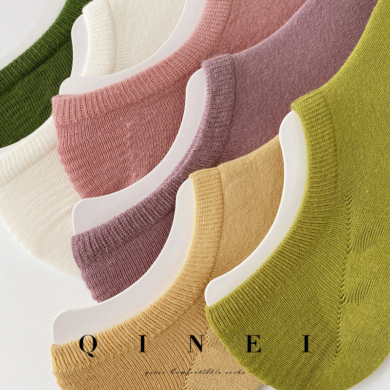 QINEI seven solid color boat Socks female Summer Foundation Joker cotton shallow silicone non-slip invisible socks