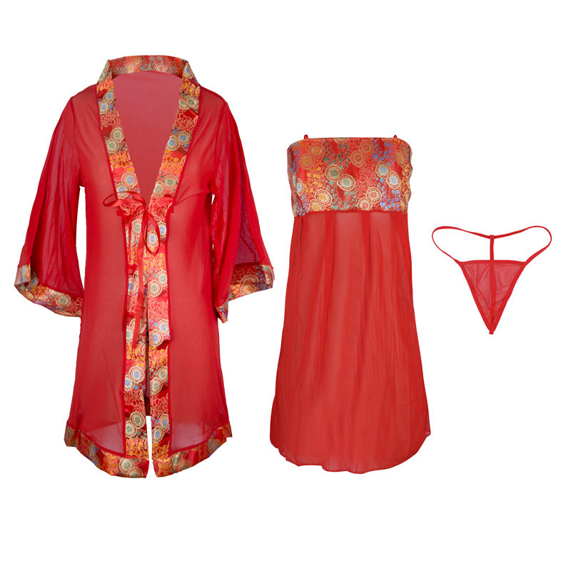 Peachy Yaoyao large size classical Tang Dynasty imperial concubine long skirt tube top sexy red bathrobe nipple stickers bridal nightdress 0165