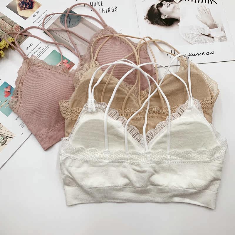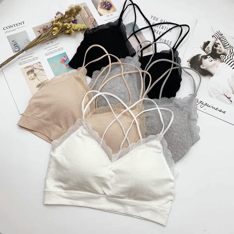 Beautiful back camisole women's cross-strap gathered chest-type cotton anti-glare tube top underwear bra net red hot style