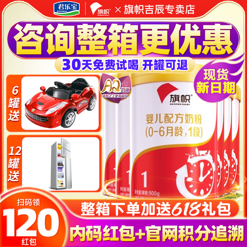 1500 1500 minus 120 Junlebao red flag powdered milk powder 1 segment infant formula milk powder red jars for a section 900g * 4 cans
