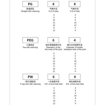 Pneumatic air pipe 3mm variable diameter through tee quick quick quick plug connector PEG PW PG4-6 change 8 Change 10-12mm