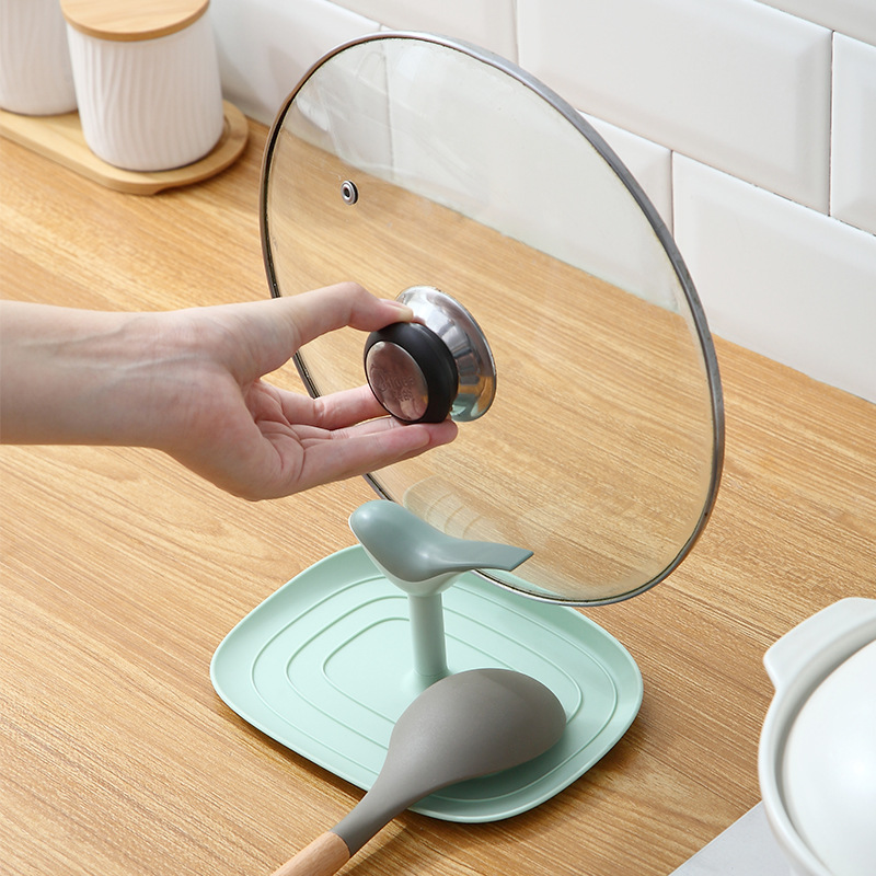 Bird pot holder household sitting kitchen countertop with pot cover chopping board storage layer rack spatula soup spoon shelf