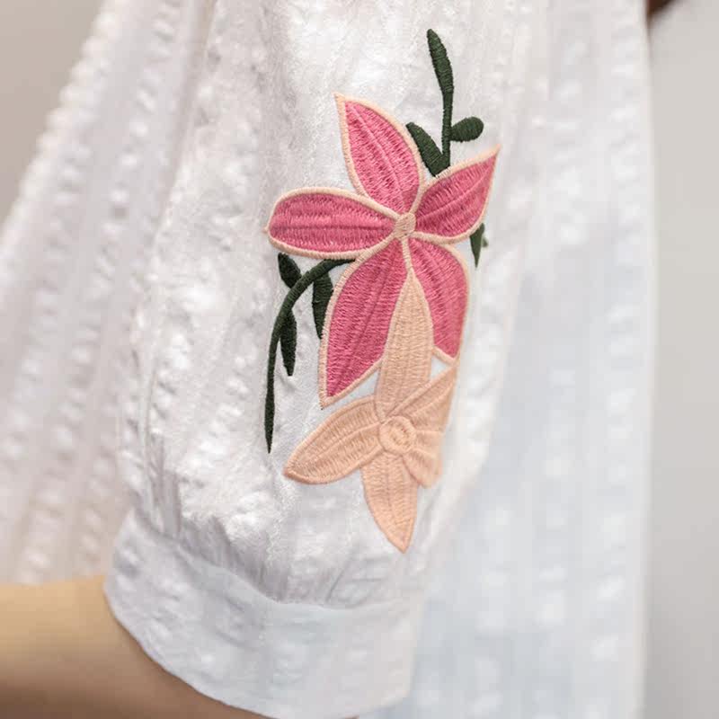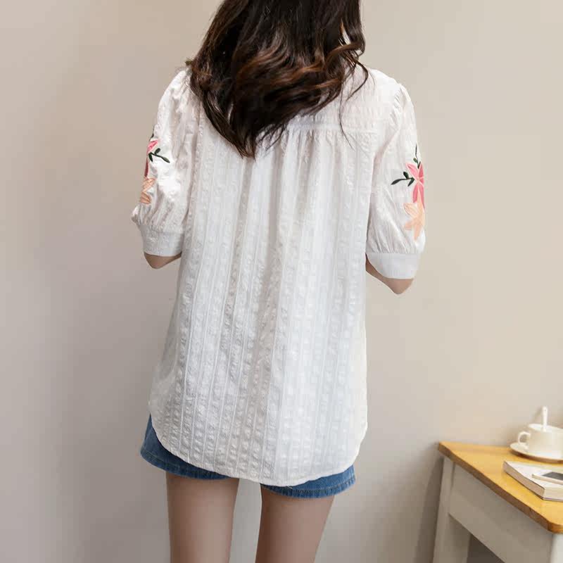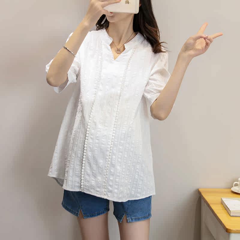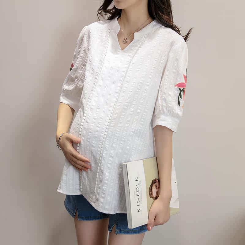 Pregnant women's shirt summer dress 2023 new short sleeve white embroidery blouse Han edition large loose middle - long shirt