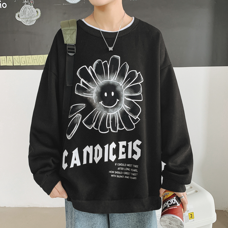 Spring wind sun printing thick cotton T men's tide large size loose round collar, fat man's casual hundred and men's clothing