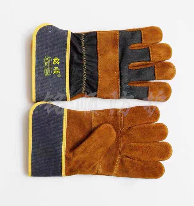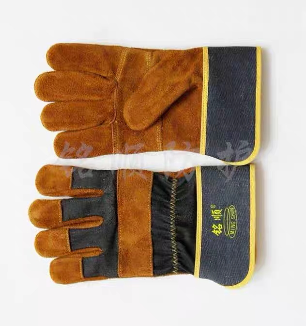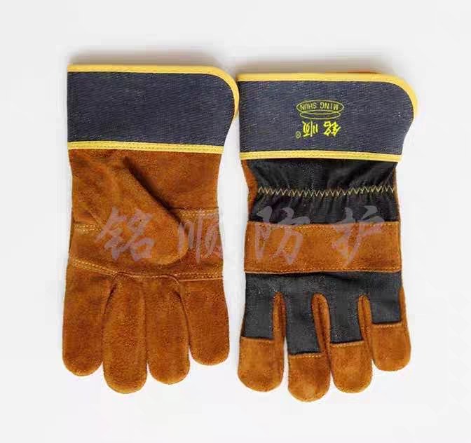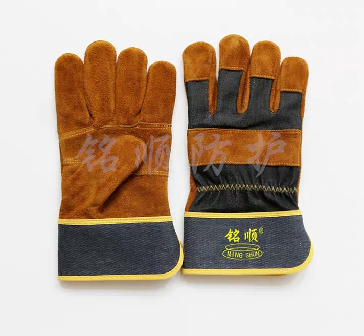 Mingshun brand 503 suede cowhide welding electric welding short leather denim anti-velvet palm labor insurance wear-resistant half leather gloves
