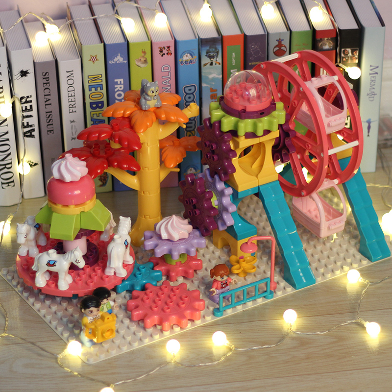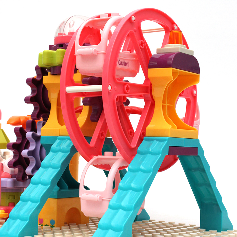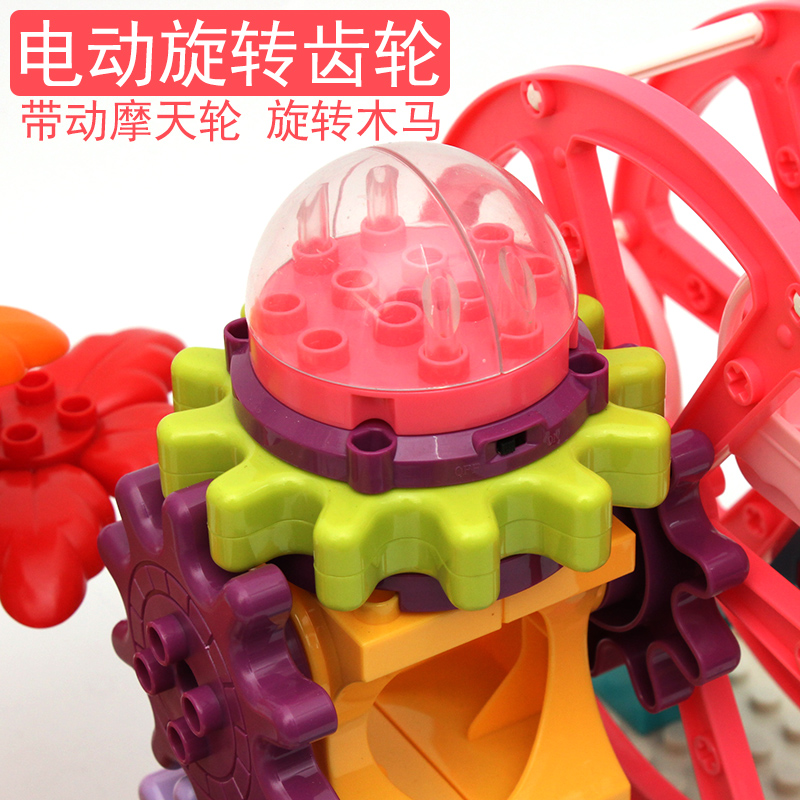 Girls Toys Kids Electric Music Assembling Gears Plugging Spinning Blocks Game Park Ferris Wheel Carousel
