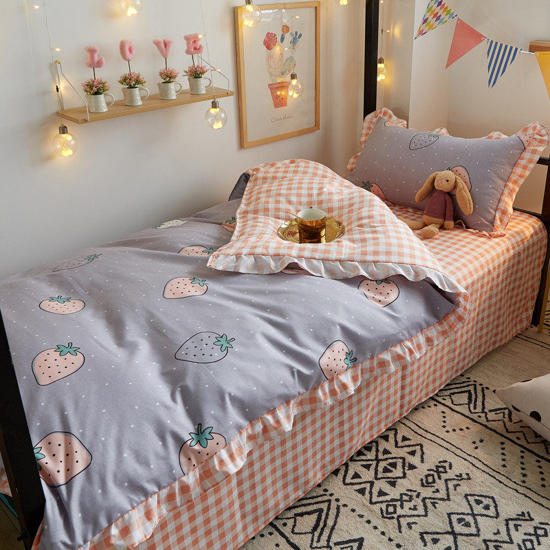 Students up and down laid out by single bed sheet bed Three sets Dormitory Single Beds Girl students Four sets of Korean style