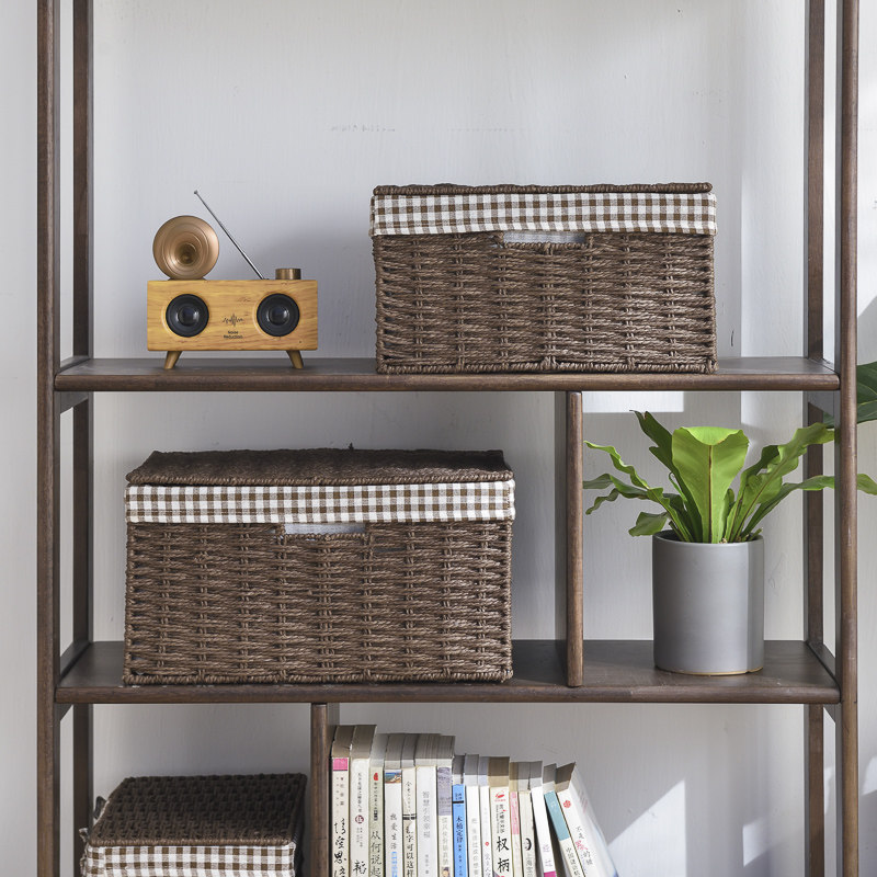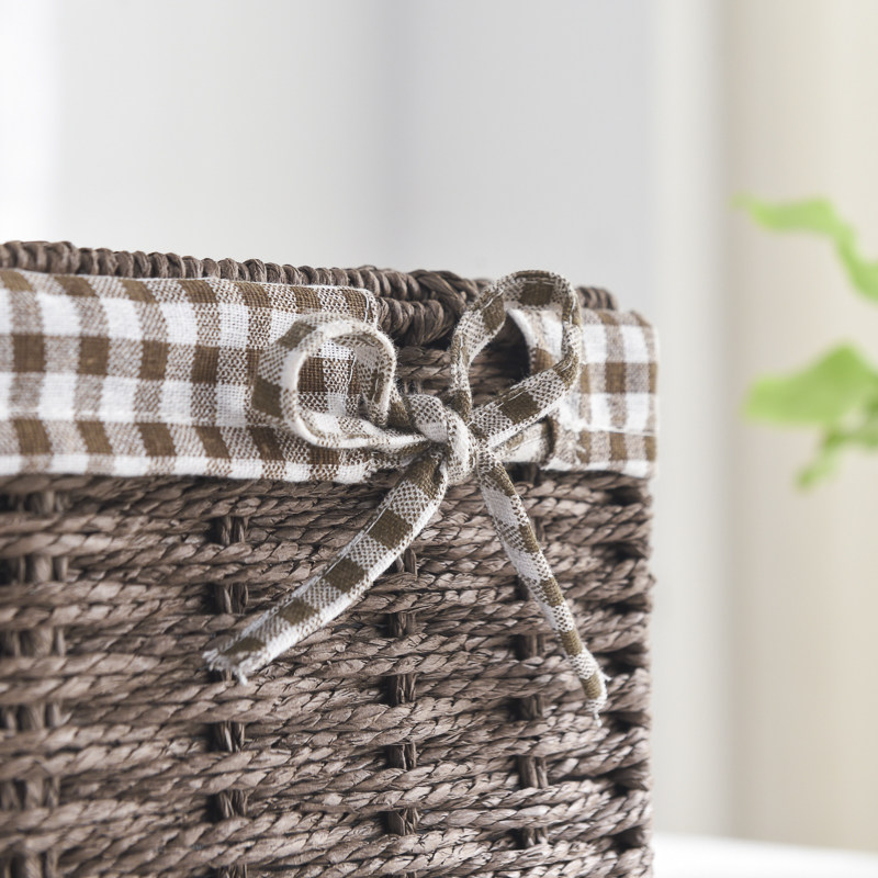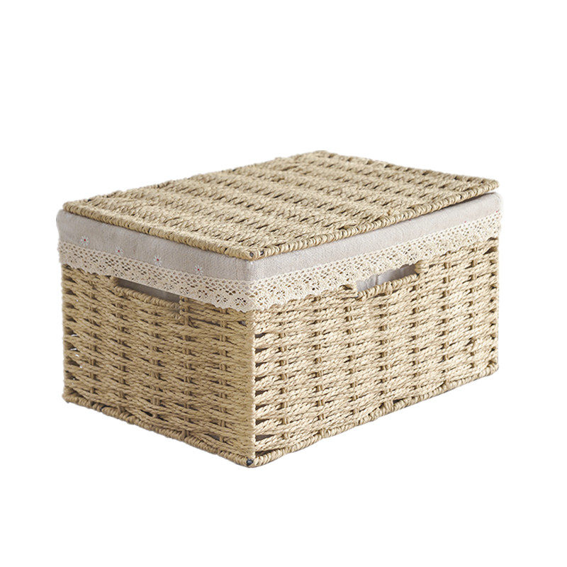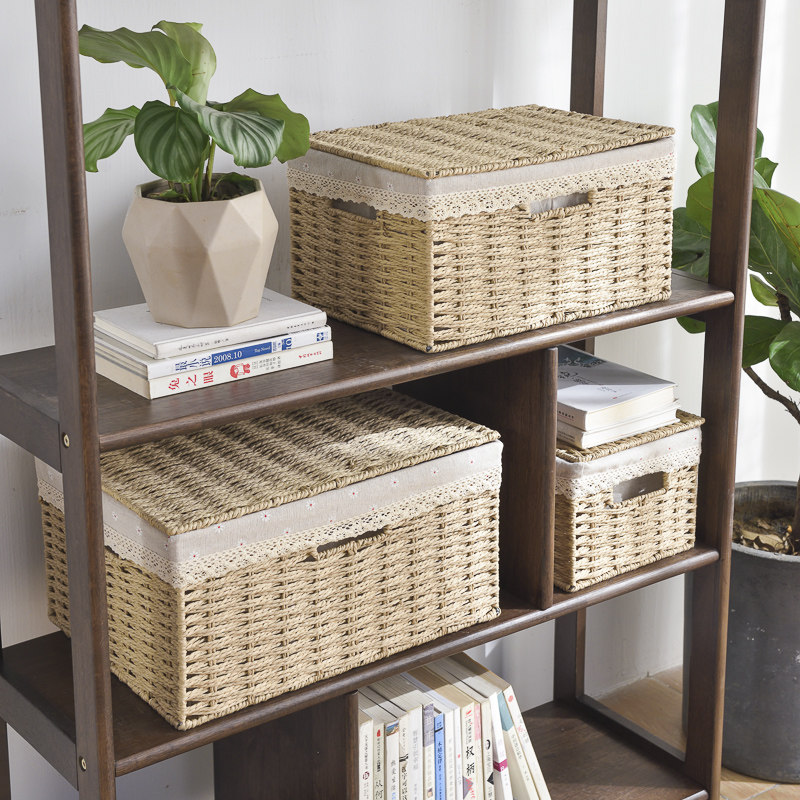 Woven container box students with lid collection basket and clothes covering basket office desktop collection box