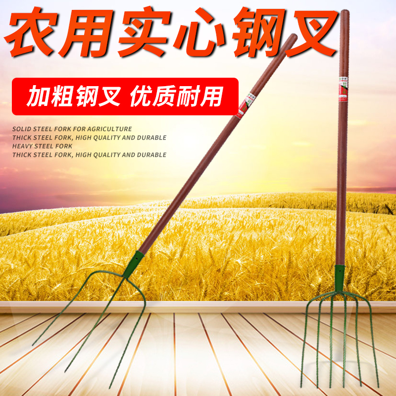 Agricultural fork fork grass iron fork Steel fork tool pitch fork Large fork King-size three-tooth dung fork Three-strand fork Bean sprout fork