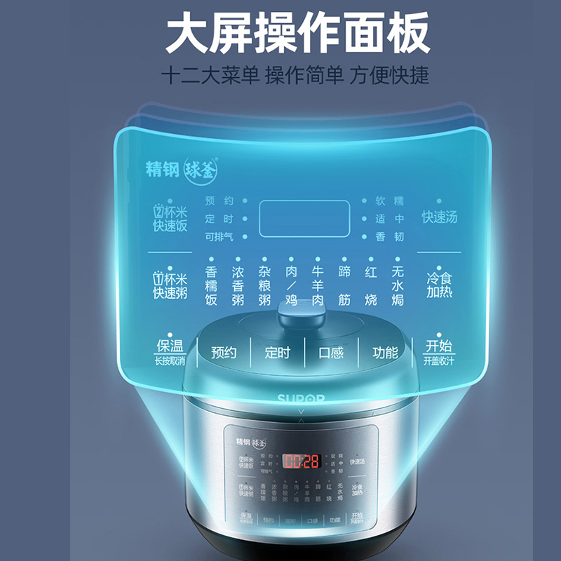Supoir fine steel ball kettle electronic pressure cooker home multifunction 5L large capacity intelligent electric pressure cooker double liner