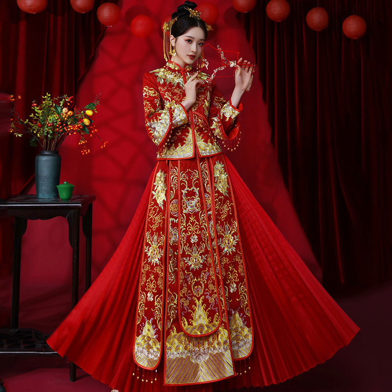 Show and suit 2022 new Chinese wedding dress bridal wedding gown with thin spring wedding dress Chinese Wind Wo Show Women