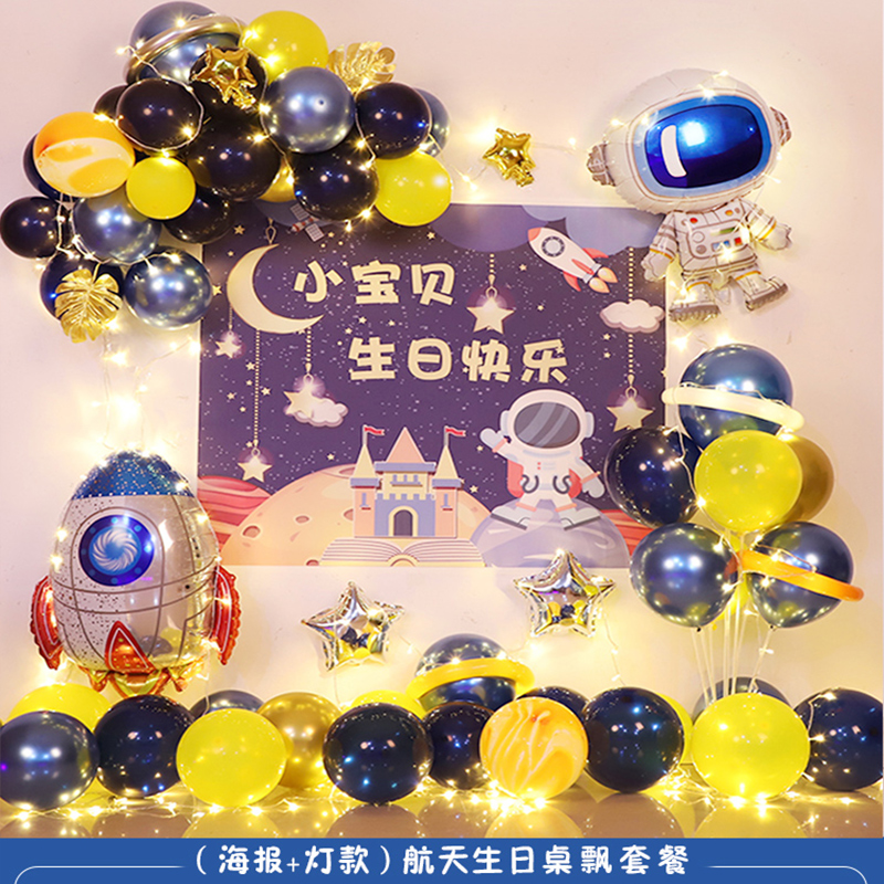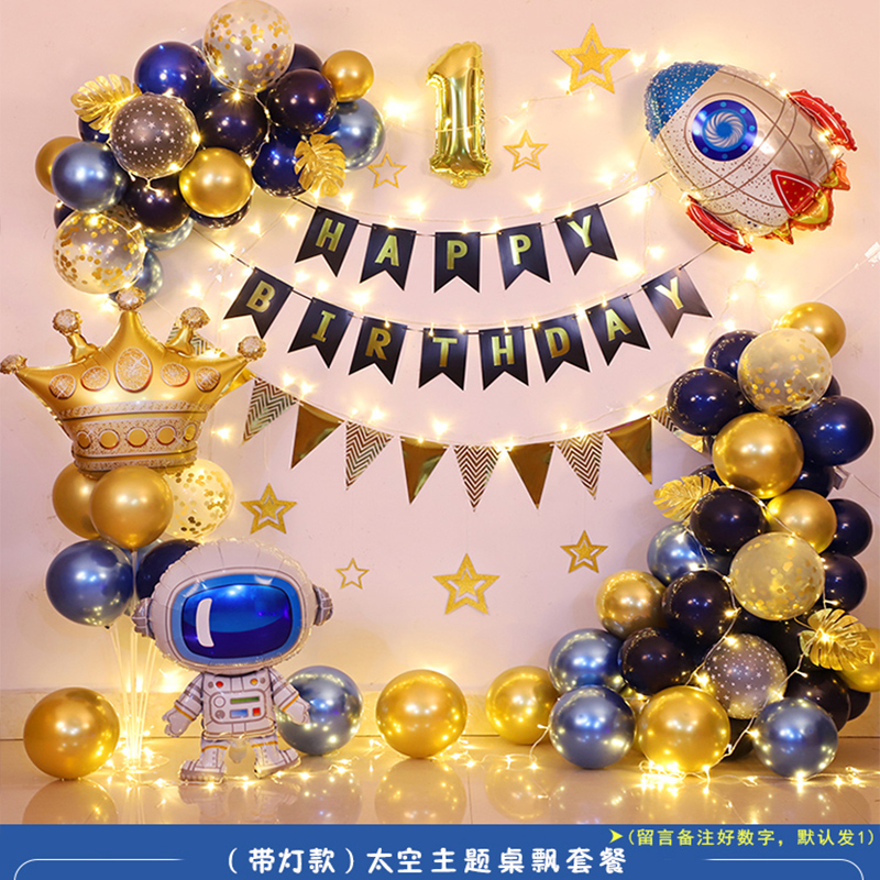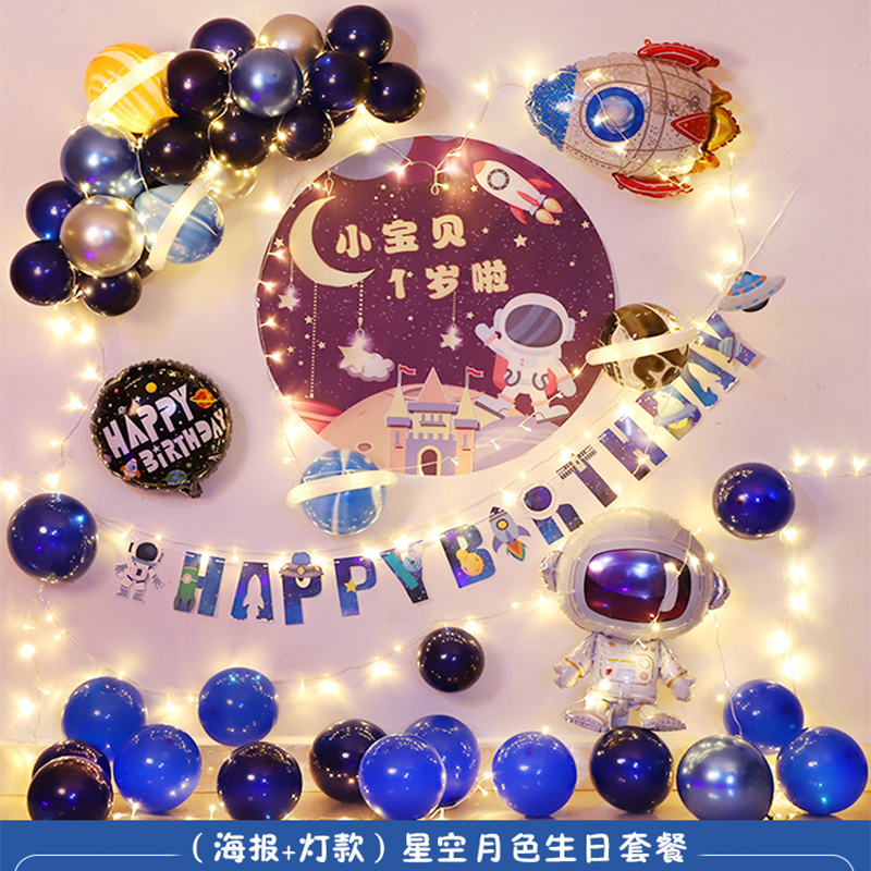Kids space themed birthday decoration scene set 2 boys baby one year old 3 party balloon 1 background wall 4