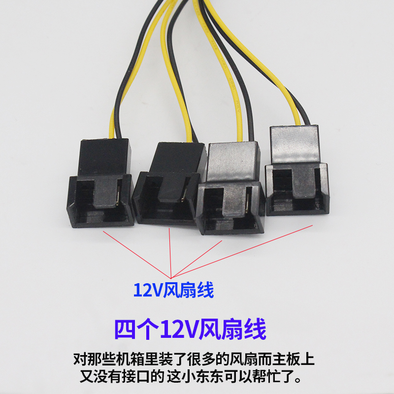 D-type head to four 12V fan cables, add four 3P fan ports in the main casing, large 4P to small 3P adapter