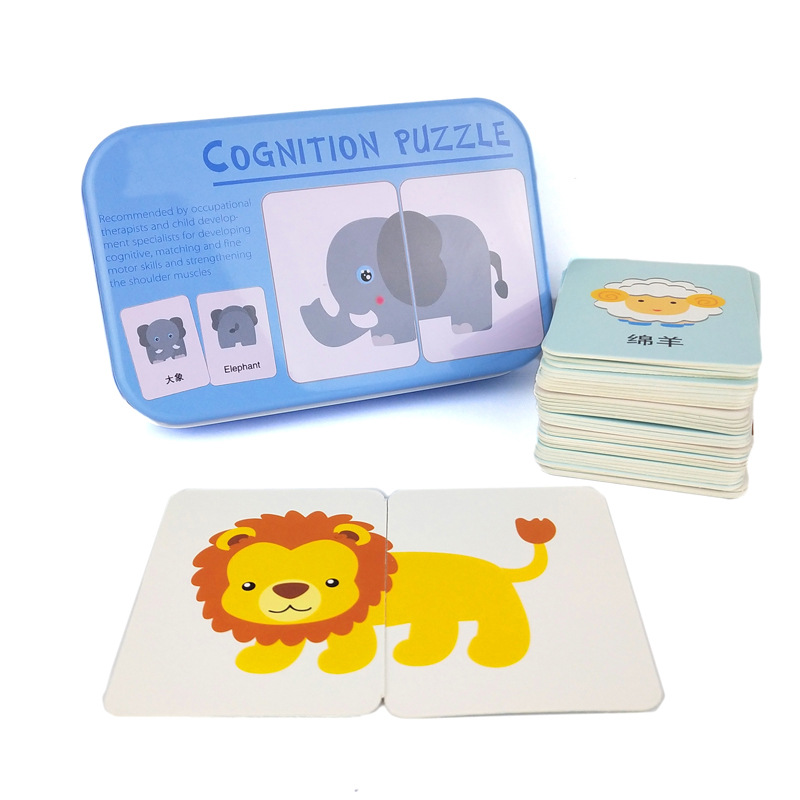 Children Early Education Puzzle Puzzle Puzzle Toy Baby Literate Cognition Card Ripping no rotten Iron box paired with 1-3-year-old collab