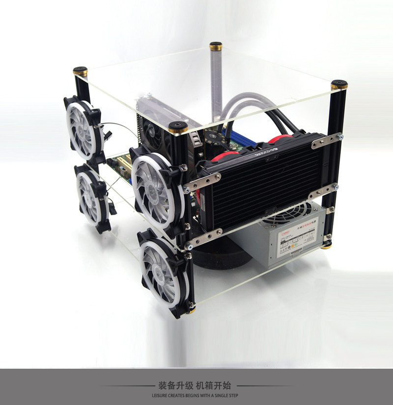 Computer host box open full-through acrylic transparent glass desktop host shell water cooled two-way EATX