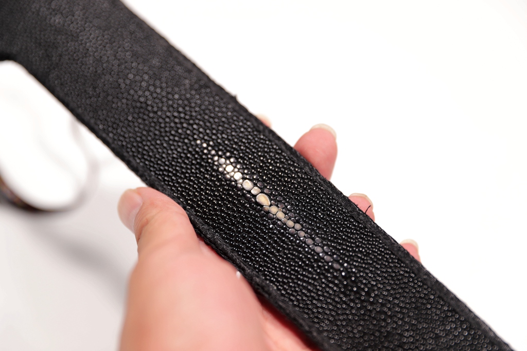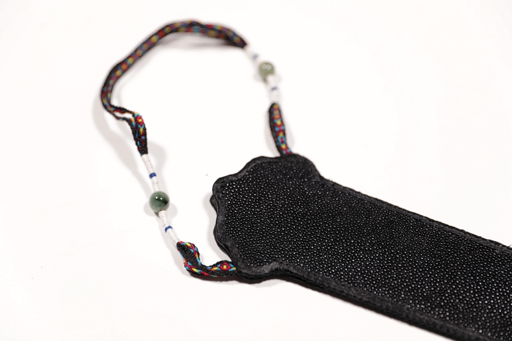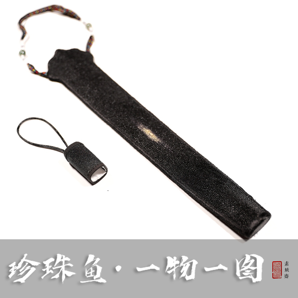 High-grade leather fan bag pearl fish skin sewing handmade Wenwan folding fan fan bag to send fan hoop one thing one picture