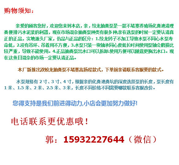 3-inch pumping manure pump without motor 4 inch pumping manure without pump with motor 3 inch 1 m 3KW motor 4 inch 1 m 4KW motor 3 inch 1 5 m indenter 4 inch 1 5 m indenter 3 inch 2 m 3 inch