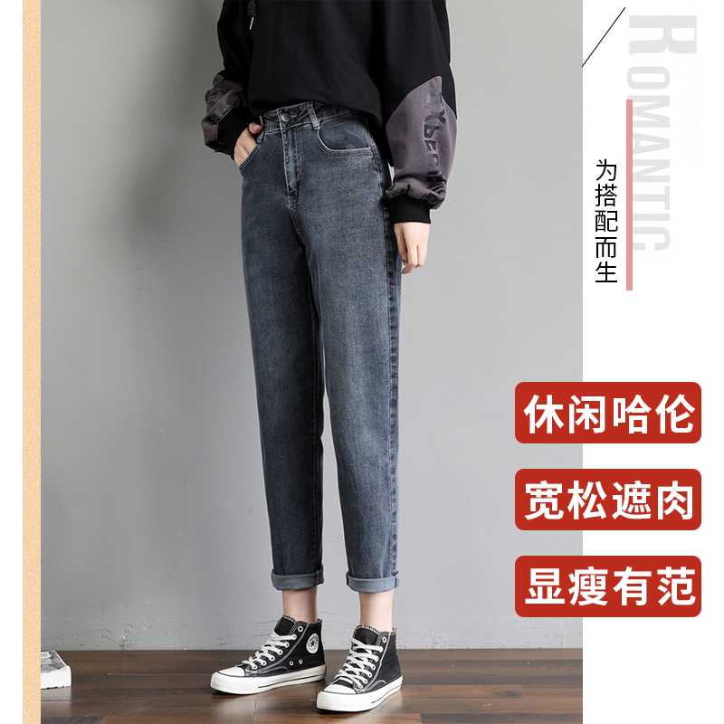 Spring and Autumn 2022 new high-waisted daddy jeans women loose oversized mm straight tube thin velvet harun radish pants