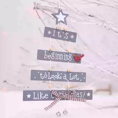Wooden Christmas tree pendant white wooden Christmas tree pendant Gray