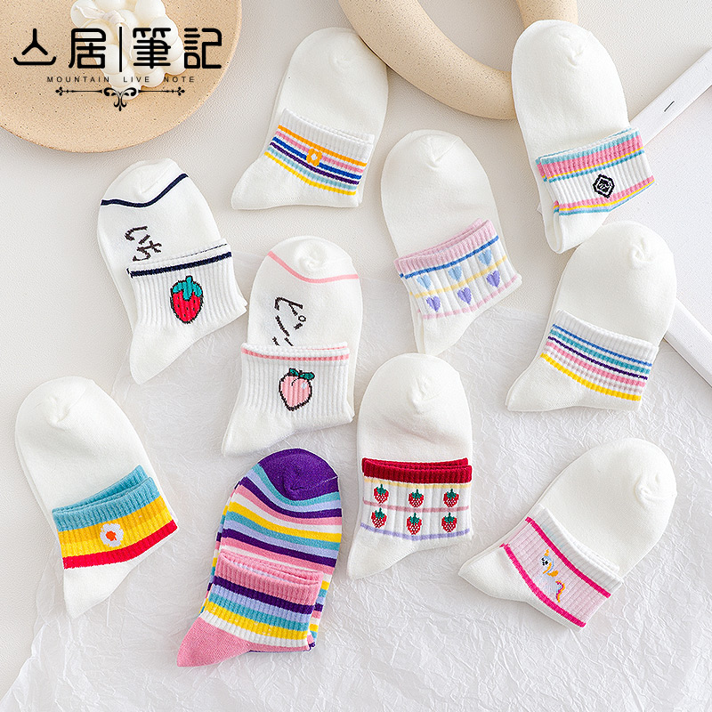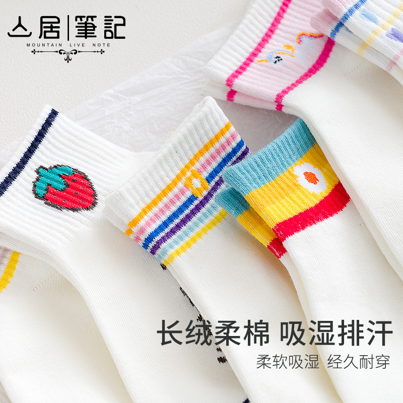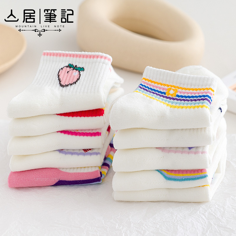 Mountain Residence Notes Nets Red Socks Child Tide Short Socks Shake Sound Shallow Mouth Summer Thin white pure cotton Summer low Help cute