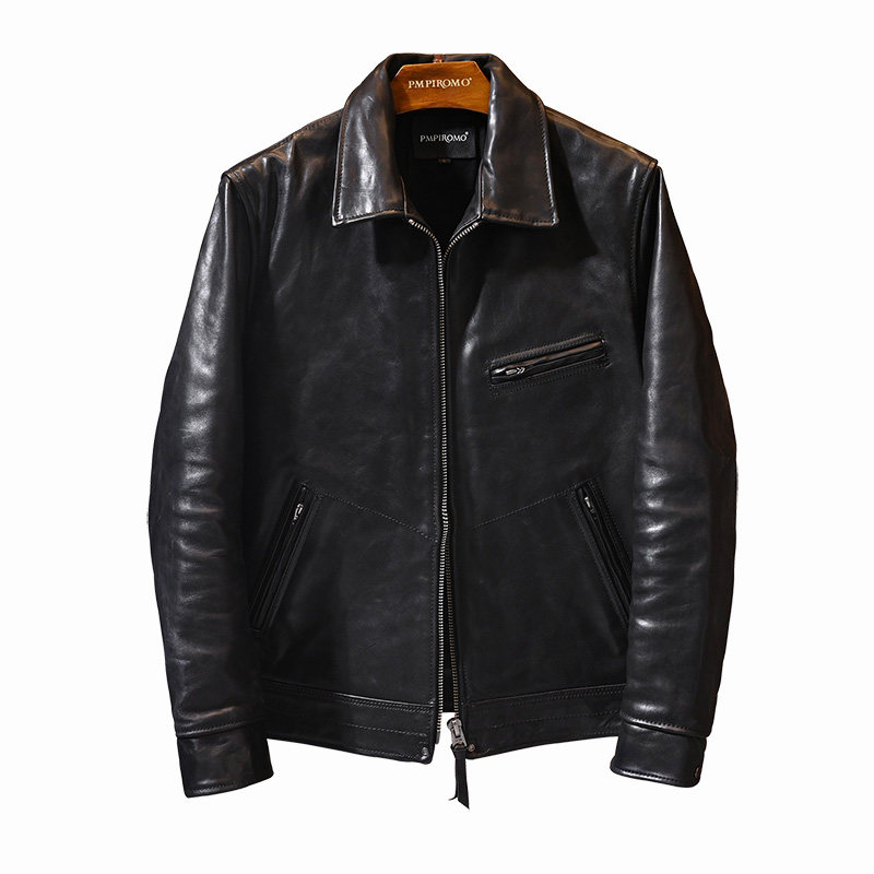 Real fur coat men without coating head Mapimukhlan retro handsome leather jacket short repair wooden box